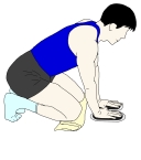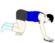 ・ひざまずいた状態からそれぞれの手の下にスライダー置く。 ・直接、フロアにひざまずくとかなり膝に負担をかけるので、タオルなどを使用するとよい。 |