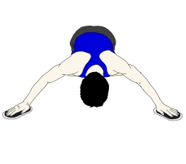 ・腕は弧を描くように左右に開き、体を前方へスライドさせていく。 ・このとき、なるべく頭からお尻まではまっすぐに保つ。 |