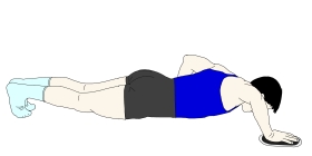 ・手と手の幅を肩幅程度に開いたプッシュアップポジションを取る。 ・頭からかかとまでまっすぐに保つ。 |