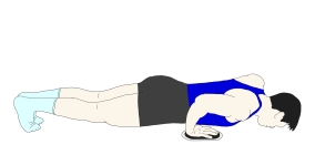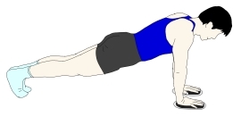 ・スタートの状態から、左右の手を、一方は前、もう一方は後ろにスライドさせながら肘を曲げて胸をフロアに近づけていく。 ・この時、頭からかかとまでまっすぐに保つ。 ・帰りも、姿勢をしっかりと保ちながら手でフロアを押すようにして肘を伸ばしていき、スタートのポジションに戻していく。 ・胸をどれくらいフロアに近づけるかで運動強度の調節が可能だし、膝をついた形で運動強度を落とすこともできる。 |