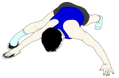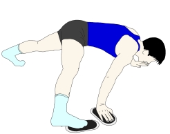 ・片側(イラストでは右側)の手と足の下にスライダーを置き、肩幅程度のプッシュアップポジションを取る。 ・頭からかかとまでまっすぐに保つ。 |