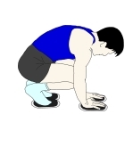 手も足も広く開いたプッシュアップポジションから、手と足を同時に体幹部にスライドさせていく動作になります。どちらかと言うと、下半身よりも上半身の筋肉群への刺激が強い動作にはなりますが、全身運動と言ってもよいかもしれません。