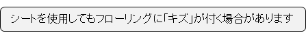 「シートを使用すればフローリングにキズがつかない」とお約束するものではありません。シートの表面には細かいポリエステルの繊維が出ていますので、その繊維によってフローリングの種類によっては細かいキズが入る場合も十分に考えられます。