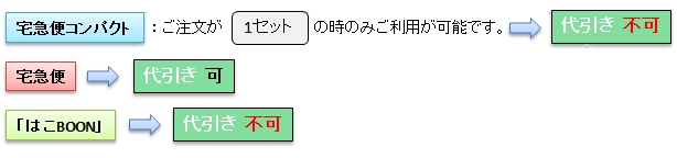 「代引」の場合、「ヤマト運輸」の「宅急便」になります。
