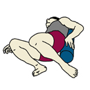 体の片側からフロアに着き、ポールを手で横に転がし脇に移動させてから体を起こしていく。 |