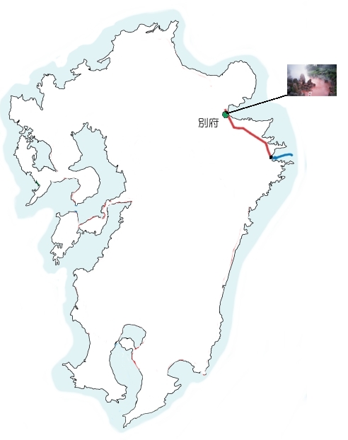 九州(大分県佐伯市)に入った初日に別府温泉まで走っているはずである。その距離を調べてみると80キロもない。今回の旅行では、まあ、時間的に余裕があったということもあって、1日に走る距離を「頑張ってかせいでやろう!」という感じではなかった。かなりゆっくりと走っていた。1日の走行距離が100キロ前後であればかなり余裕で走れる。