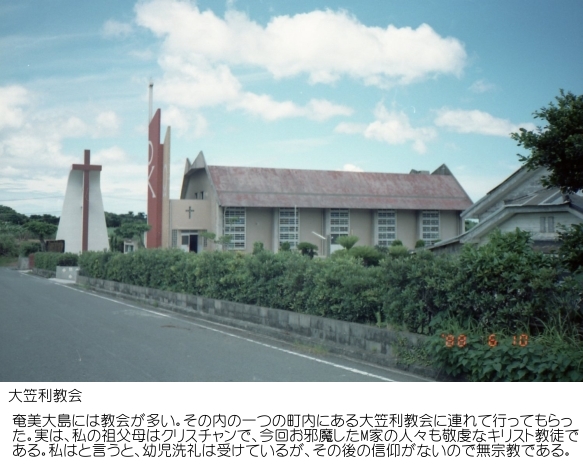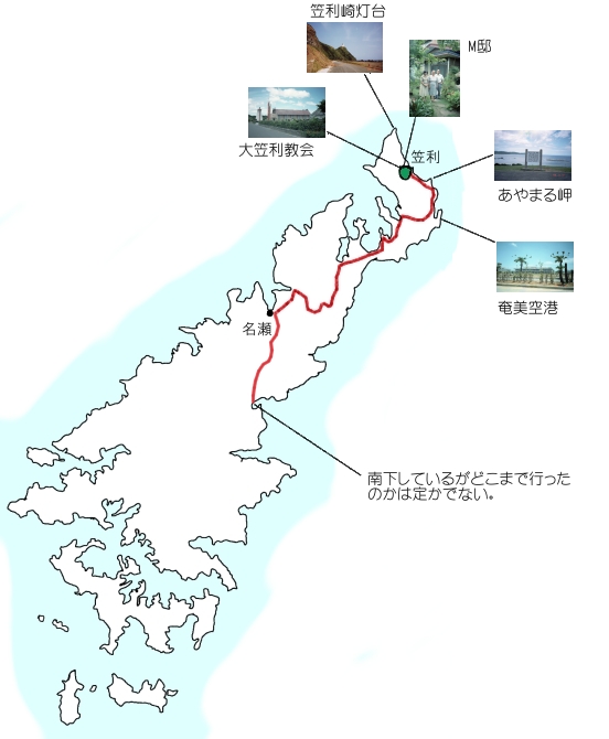 さて、祖母の妹さんは、名瀬からおよそ40km離れたところにある笠利と言う町に住んでいた。(2006年に名瀬市、住用村、笠利町が併合し「奄美市」となっている)地図を見ると、多少曲がりくねってはいたがほぼ1本道のようなものだった。