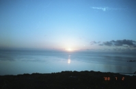 夕食を終え、屋上に上がる時間帯は、だいたい水平線に陽が差しかかる少し手前で、まだ辺りは明るかった。「夕食、美味しかった〜」などと、しばらく屋上に寝転がって休んでいると、陽は水平線の向こうに沈み始める。残念ながらいるもて荘からでは山々が邪魔をして直接陽が沈むところを見ることはできないが、陽が沈む方向の水平線がうっすらとオレンジ色に染まるので、そのおこぼれくらいは楽しむことができた。