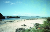 「星砂の浜」とは何ともロマンチックな響きである。文字通り星の形をした砂が見られるのだが、もともとは「砂」ではなく、有孔虫という虫の一種で、生きているうちは岩などにひっついているが、死ぬと岩から離れてその殻だけが残ったものが「星砂」となる。現在では、かなりその数が少なくなっているようだ。