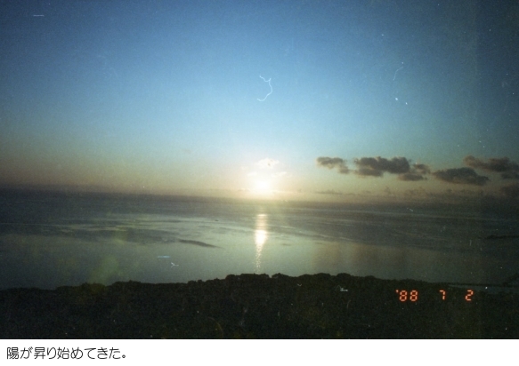 朝陽を見るのであるから、何時に出発したのかはもう覚えていないが、暗いうちに出発しなければならない。しかも距離的には恐らく4km弱位は離れているので、私たちはレンタカーを借りた。サニークラスの車に7名が乗り込んで出発した次第である。