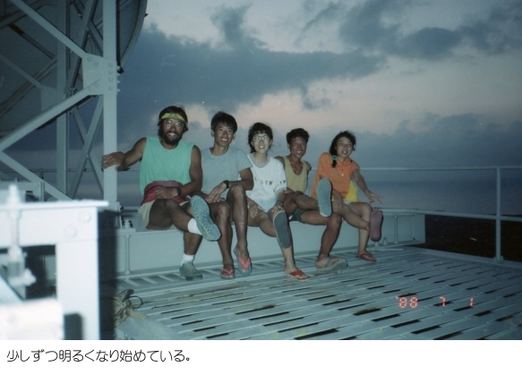 「朝陽を見に行こうよ!」と誰かが言い出し、「行こう!行こう!」ということになった。どこかの浜にでも行くのかと思っていたら、NTTの鉄塔に登るということなのである。「ええ〜、そんなことしていいの?」と聞いてみると「無人だから大丈夫!」との答えであった。