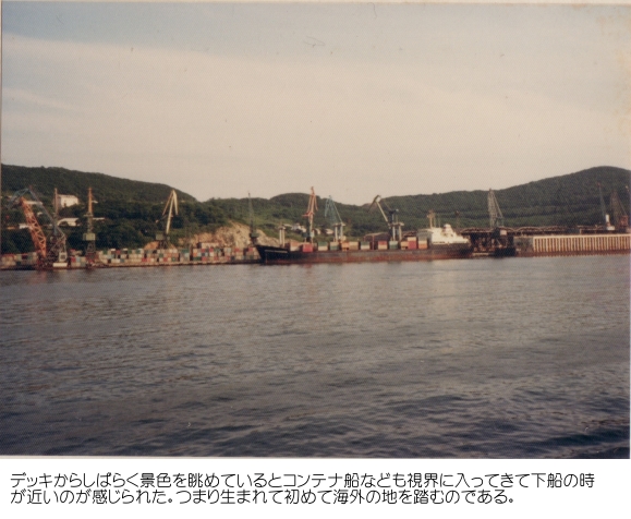 港が近づくにつれて、カーキー色の制服を着た作業員が着岸に備えて準備しているのが目に入ってきた、すると「間もなくナホトカ港に着くので下船の準備を」というアナウンスが船内に流れたのである。