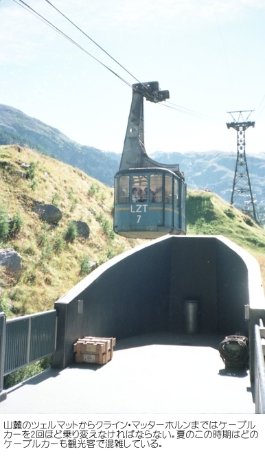 クライン・マッターホルン:眼前にマッターホルンの雄大な景色を眺めることができる。ツェルマットからケーブルカーなどを2回乗り継ぐ。