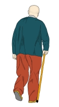 今までは杖などは使ったことがなかったが、それからは杖をついての生活になった。杖を使えばある程度の歩行はできるので、トイレや身体を拭くことなどは家族の手を借りることなく自分一人で行っている。