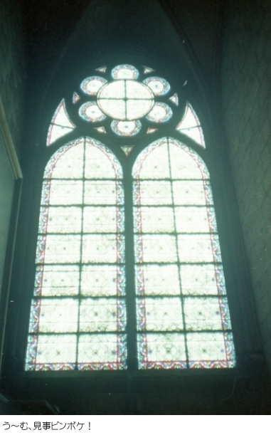 ノートルダム大聖堂の魅力の一つとして、その内部のステンドグラスがあるが、撮った写真は全てピンボケである。当時はもちろん全てフィルム式のカメラで、今のデジカメのように撮れ具合をその場で確認するなんていう芸当は不可能。まさかこんな時代が来るとは…。