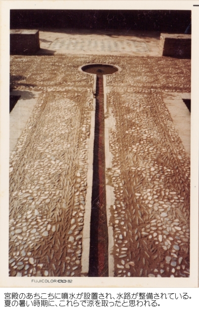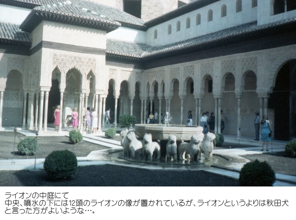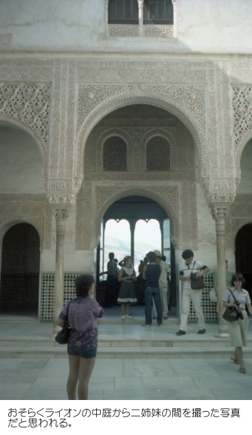 「宮殿を見ようと訪れる日本人の観光客は多い。グラナダでは同じホテルに2泊する。ホテルのおばさんは英語は全くと言ってよいほど話せないが、だいたいは身振り手振りで何とかなるもの。それも旅の楽しみの一つである。」