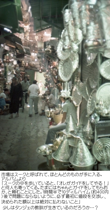 さすがにユースホステルはなく、私はこの広場に面したホテルに宿泊をした。アルバムを見ると「ホテル代、シングルで20ディルハイム(約800円)」とある。