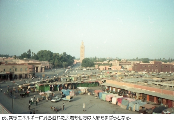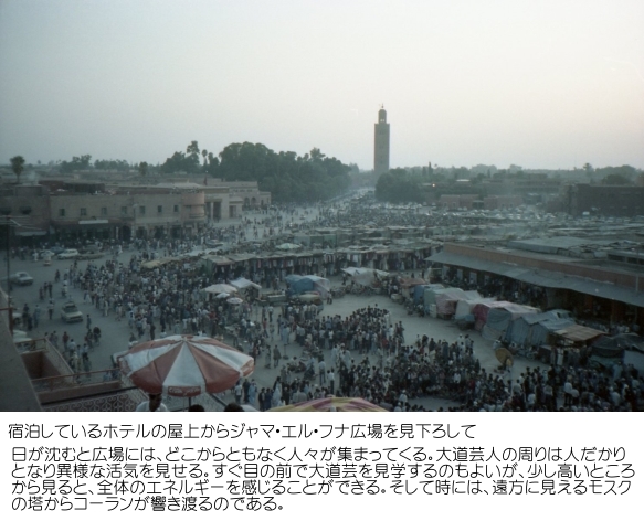 私が訪れたときも、大道芸人にカメラを向けるとお金をせがまれたり、麻薬である「ハシシ」をしつこく売りつけてきて煩わしい思いはたびたびしたが、さすがに「レストランから見るだけではつまらないのでは?」と思ってしまうが、このような文もある。