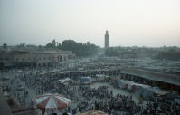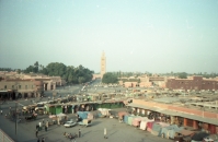 旧市街に移動した理由は「ジャマ・エル・フナ広場」があるからだ。この広場は、別名「気違い広場」とも呼ばれ、コブラ使いや猿回しなどの大道芸や飲食を扱う多くの屋台が立つ。マラケシュを訪れる観光客のほとんどは、このジャマ・エル・フナ広場の見物を目的としていると言っても過言ではないくらい有名な場所である。