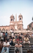 今の若い子は「オードリーヘプバーン」と聞いても「オードリーって、お笑い系の?」と知らない人も多いと思うが、彼女が出演した「ローマの休日」という映画でこの坂が一躍有名になった。ヘプバーン扮するアン王女がこの坂でジェラートを食べるシーンが撮影された。(写真)それがなければ全く人々に印象を与えないごく普通の階段である。