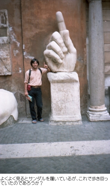 「ローマのテルミニ駅に着いたのは、夜の9時を少し過ぎていた。駅構内の銀行はすでにどこも閉まっている。その前で右往左往していたところ、イタリア人のおじさんが「両替か?」と近寄って来た。最初は少し警戒したが、とりあえず現地の通貨がないと始まらないので、率は悪かったが両替をしてもらった。「こうやって生計を立てている?人もいるんだな〜」と思った。そして、両替をしてからがまた一苦労であった。空腹の中でのホテル探し、1軒目は満員、2軒目も同じく、3軒目も…。重いバックパックを背負いながら見知らぬ街での夜道を歩くのは辛い。「泊まれないのでは?」という不安がよぎる。それでも何とか5軒目にしてようやく開いているベッドが見つかった。1つの部屋に5つのベッドが並べられていて8000リラ。(約1600円)」
