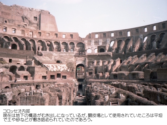 ローマを代表する歴史的建造物の一つで、1度くらいは写真などで目にしている人も多いと思う。ローマ帝政期に建造された円形の闘技場である。映画「グラディエーター」を思い出す。ここで多くの人の命が落とされ、それを見て人々は熱狂したのだろう。スペインの闘牛場と重なってしまう。収容人数は45,000人とのことで、ほぼ東京ドームと同じのようだ。