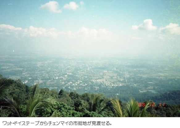 市街地から約14キロ離れた標高約1,000mのステープ山の山頂近くに建立された寺院で、300段の石段を登らないといけない。現在ではケーブルカーもあるようだが、当時はなかったように思う。しかし、どうでもよいが、アルバムに貼られた写真には寺院自体の写真はなく、そこからチェンマイの市街地を写したものだけが貼られている。