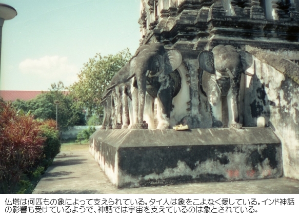 堀で囲まれた旧市街地には寺院がいくつかあるが、今となっては、どこを訪れたのかは全く記憶にない。アルバムに残っているのは以下の写真だけで、ワットチェンマイのものだと思われる。寺院等にはそれほど興味を持たない私にとって、ワットプラケオやワットポーのようによほど特徴的なものでない限り、どれも同じように見えてきてしまう。