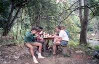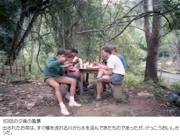 まだ、明るいうちに1日目の目的地である小屋に到着した。もちろん、それは「山小屋」などという立派なものではなく、無人の高床式の小屋で、広さ的には10畳くらいはあったように思う。中には囲炉裏があった。まず、私たちは、夕食の支度をするための焚き木を集めなければならなかった。また、それらの焚き木は、小屋の中で夜、暖を取るためのものでもあった。