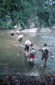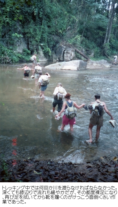 また、場所によっては川を渡ることもあった。川と言っても、深さは膝にかかるかかからないか程度のものであったが、当然、その都度裸足にならなければならなかったのは厄介であった。