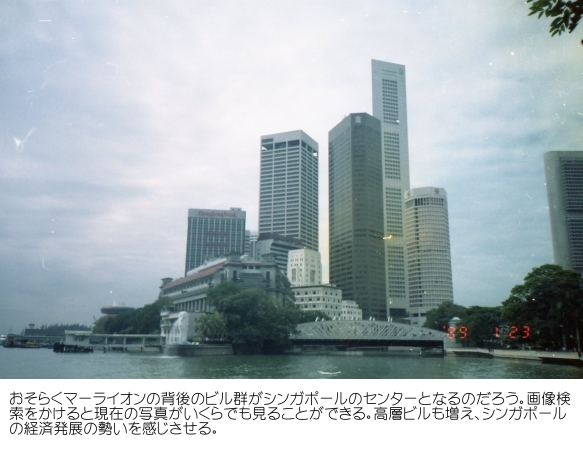 さて、観光だが、マーライオン以外にも蘭の植物園など多少は行ったような気がするのだが、アルバムに貼られている写真は以下の1枚だけである。 ⇒ 少し撮った角度は異なるがほぼ現在の写真