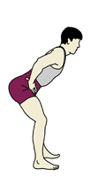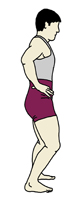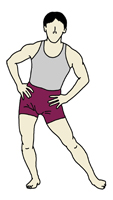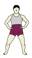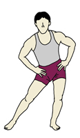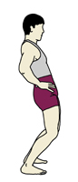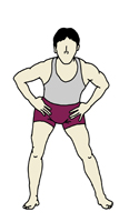 骨盤を前後左右に大きく重心を移動させ、1回転させていきます。左右への傾斜の場合、特にベリーダンス系では、たとえば、イラストの2の右へ移動させた場合は、左足のかかとは浮かせて動作を大きくします。