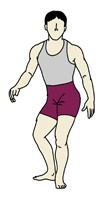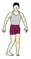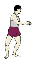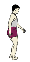 イラストの2が股関節の外旋、3が内旋の動きです。通常、レッスンの中では交互に行っていきます。上半身はなるべく前を向けたままにしておきます。内旋でも外旋でも回転しきった時に、左右の骨盤(腸骨)を気持ち持ち上げてツイストの動作も加えてやると、脇腹のシェイプアップ効果も出てきますし、運動量も全体的にアップし、脂肪燃焼効果も出てきます。 他の動作同様、上半身はなるべく正面に向けておきます。 |