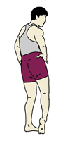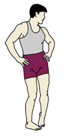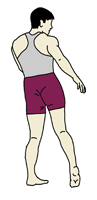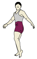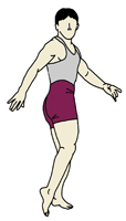 《片足を軸にし、もう一方の足はつま先立ちになって》