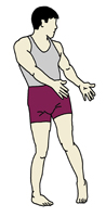 最初の動作を、一歩足を前に出して大きくひねったものになります。やり方はほぼ同じです。しっかり行えればかなり強い刺激が脇腹に加わりますので、脇腹を締めたいと思っている人には最適なエクササイズです。私はやっていて、何回かつりそうになりました。 |