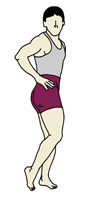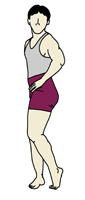 | 骨盤シェイプ系の基本的なエクササイズの一つです。骨盤を前にひねって脇腹に刺激を与えますので、ウエストを締めたい人には必須の動作です。 |