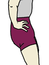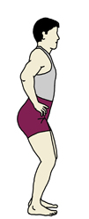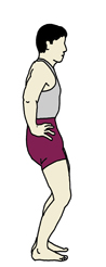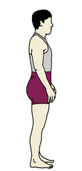 何も意識しないで立つと、骨盤は、通常、気持ち前傾気味になりますが、ベリーダンスのレッス ンでは、基本的な姿勢として、骨盤を気持ち後傾させてフロアに対して垂直にします。