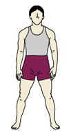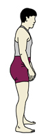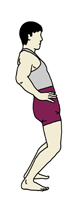 何も意識しないで立つと、骨盤は、通常、気持ち前傾気味になりますが、ベリーダンスのレッス ンでは、基本的な姿勢として、骨盤を気持ち後傾させてフロアに対して垂直にします。