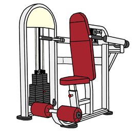 上腕三頭筋を集中的に鍛えるマシーンです。二の腕を太くしたい人にはお勧めのマシーンですが、それほど頻繁に見かけるマシーンではないような気がします |